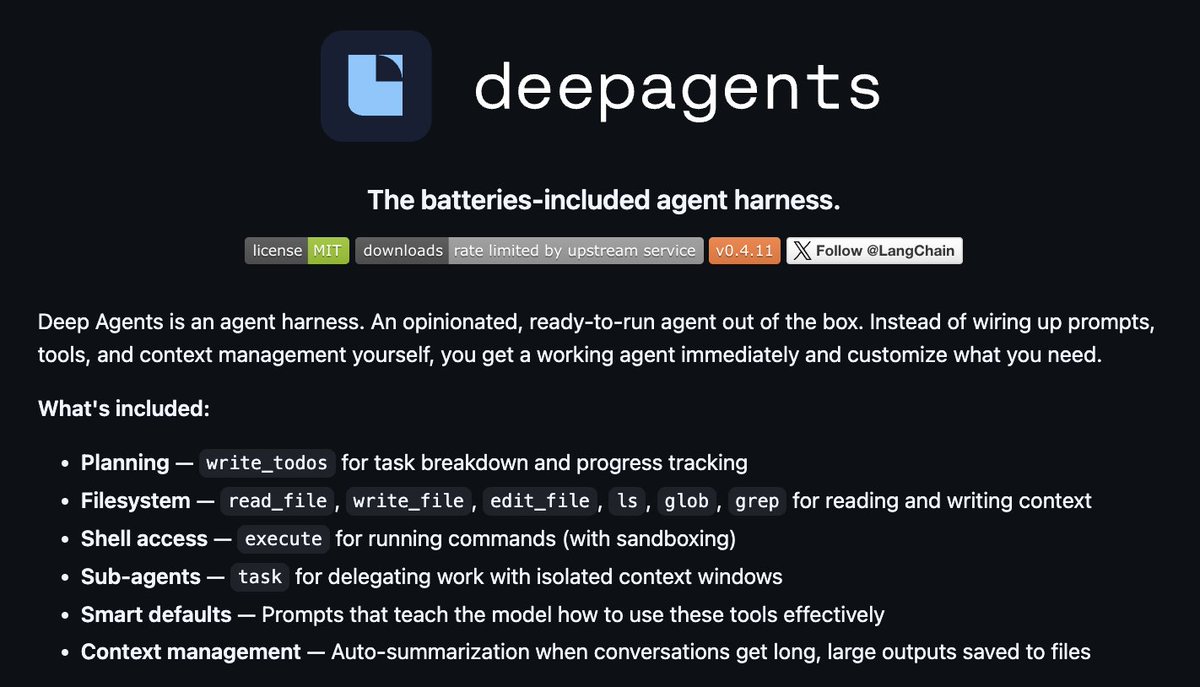 RT by @hwchase17: the deepagents library is basically our starting point for doing harness engineering and shipping agents